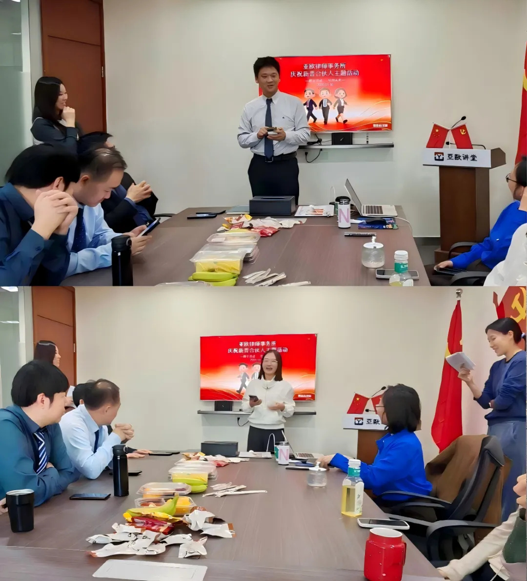 2026 年 1 月 17 日,亚欧中国总部(北京所)举办新增合伙人庆祝活动,全体驻所律师齐聚一堂,共享喜悦、共话发展。活动现场氛围热烈,两位新晋合伙人先后发言,他们均表达了对律所平台、团队支持及客户信任的深切感激,并分享了执业以来的感悟与成长。