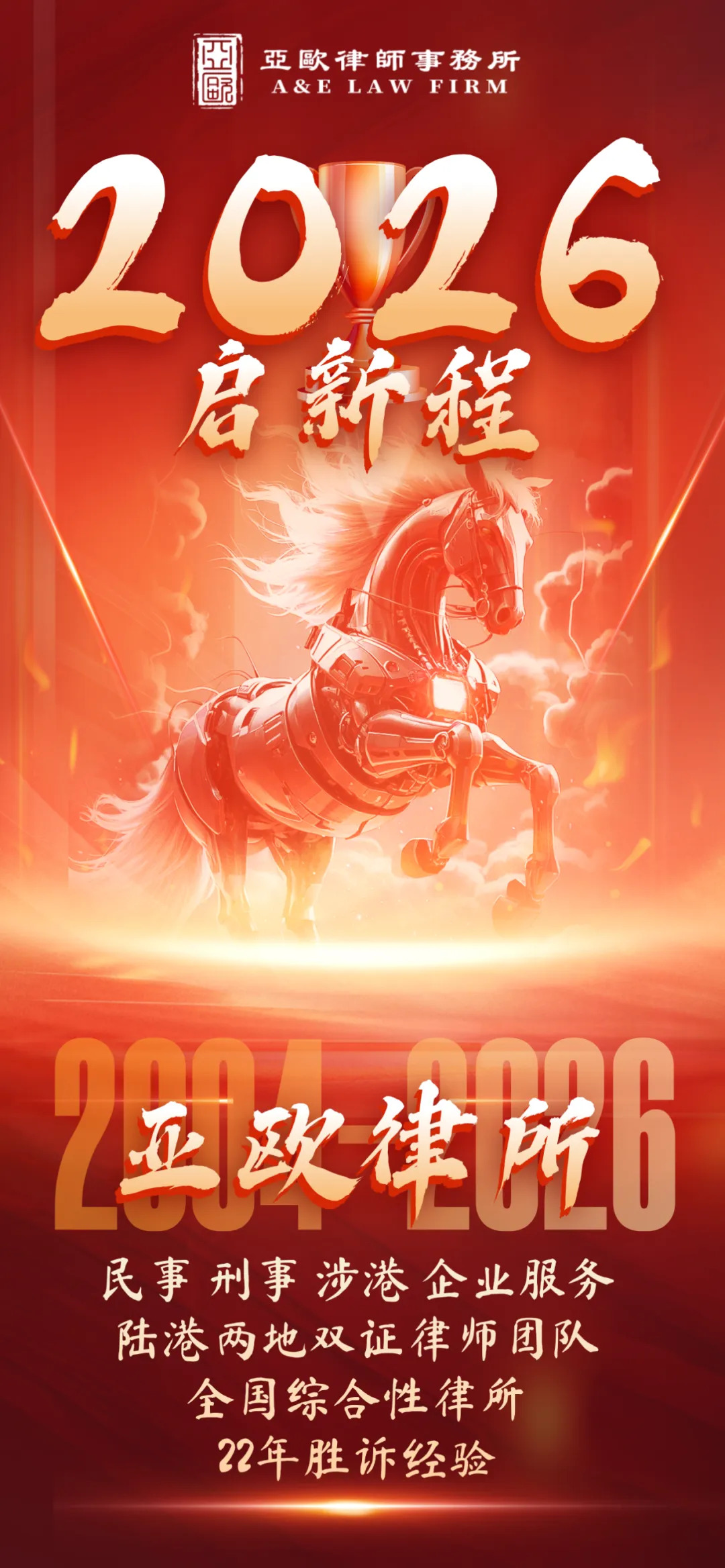 新起点承载新使命,新征程呼唤新作为。2026 年,亚欧律师事务所在彭主任的引领下,将继续秉持脚踏实地的执业作风与开拓创新的发展视野,依托专业的律师团队与科学的发展规划,为客户提供更优质的法律服务,为中国法治建设贡献坚实力量,与全体同仁共绘行业发展新蓝图。